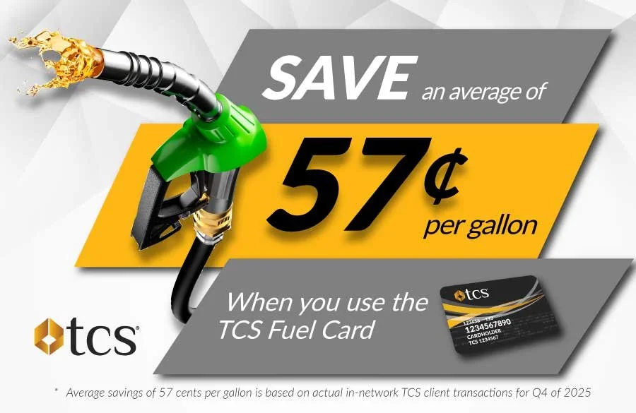*Average savings of 57 cents per gallon is based on actual in-network TCS client transactions for Q4 of 2025.